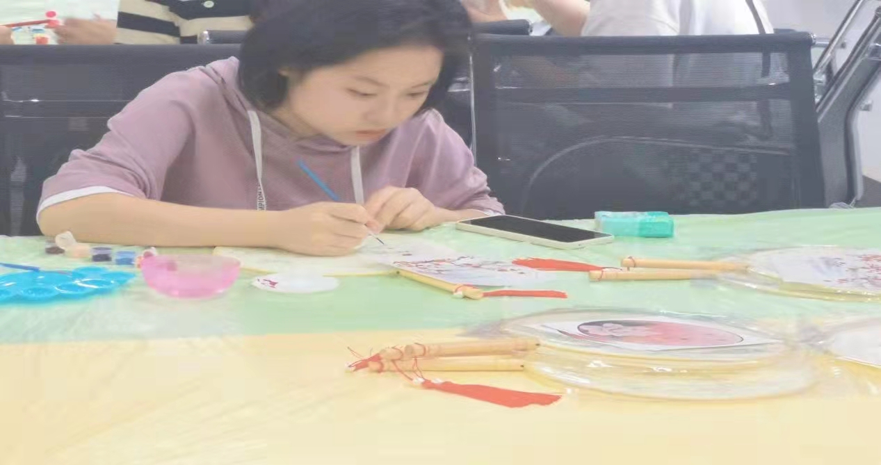 空白的一柄扇子,无限想象的空间,给予了同学们无限创造的可能,高洁的兰花、亭亭玉立的荷花跃然扇上,再用丙烯颜料着色,一柄属于自己的画扇就大功告成。