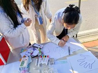 10月28日至29日活动期间,同学们踊跃参与,通过打卡记录心情变化、绘画解读情绪密码、创作抒发内心等方式,深入体验活动内涵。现场准备了印有“朋友,请和我击掌”标语的纸张,以及彩笔、中性笔等工具。同学们在纸上描绘出自己独特的手形,并签下姓名,随后邀请身边的朋友、伙伴击掌互动。