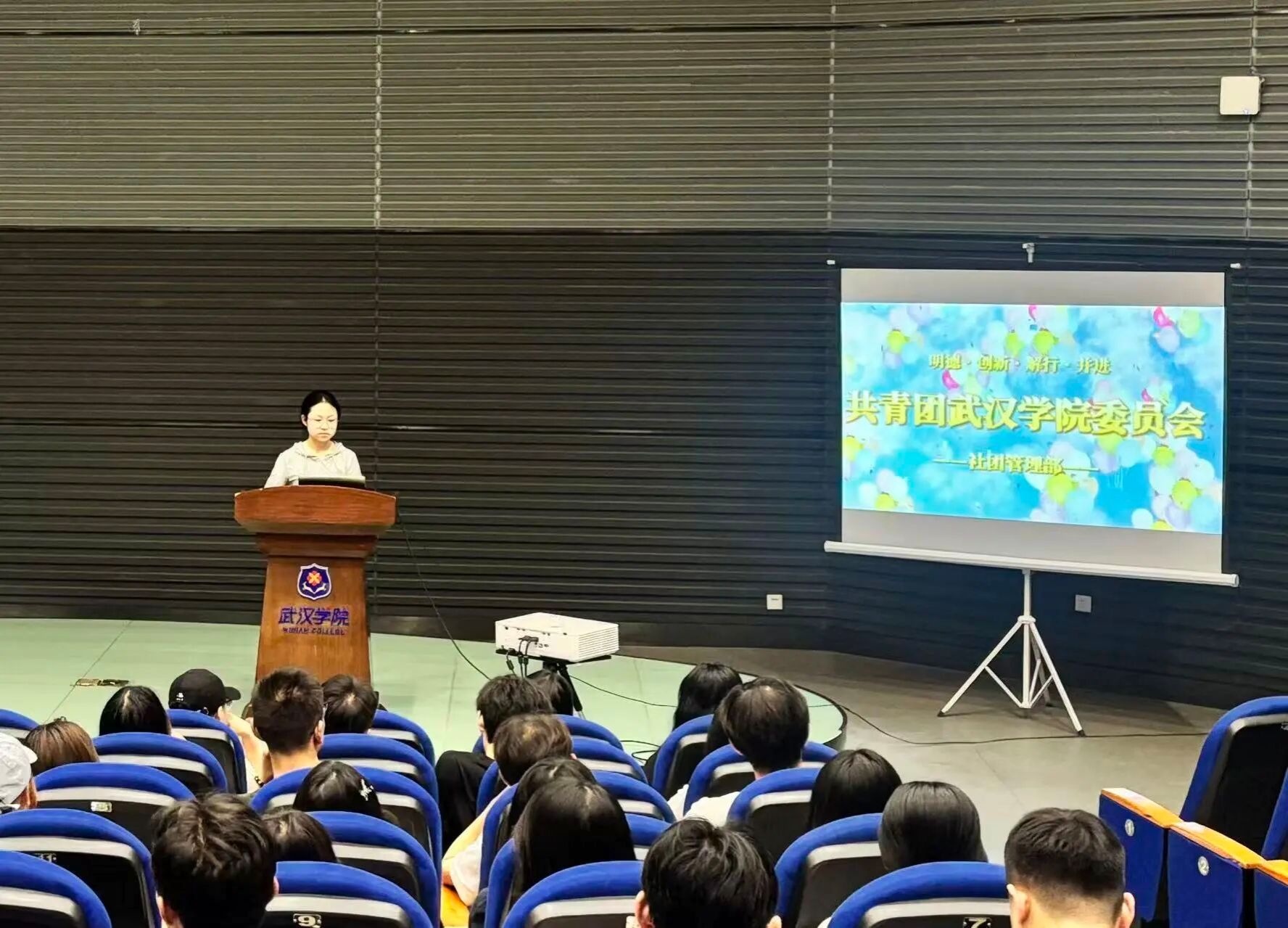 2025年9月9日,武汉学院秋季社长大会于中2104召开。会议由社团管理部成员郭瑞雅主持,校团委书记陈怡老师、校团委刘群老师、社团管理部成员以及各社团代表参与此次会议。