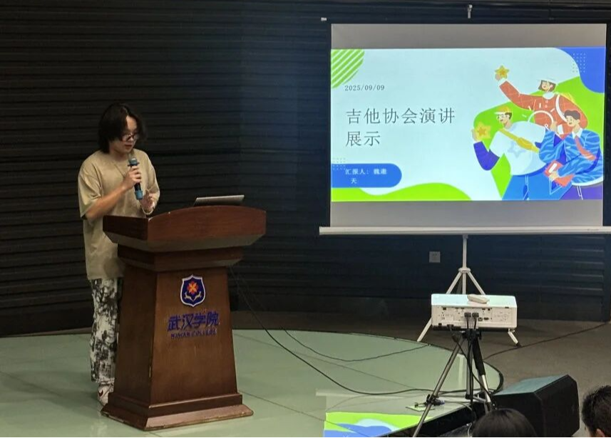 魏傲天提到了吉他协会一直致力于推广吉他文化,丰富同学们的课余生活。上一学期,协会成功举办了多场吉他演奏会和音乐交流活动,吸引了众多同学的参与。他还分享了协会在活动策划和组织方面的经验,在未来他希望可以有更多新的活力加入进来,并且可以和其他社团合作一起打造更加精彩纷呈的舞台表演。