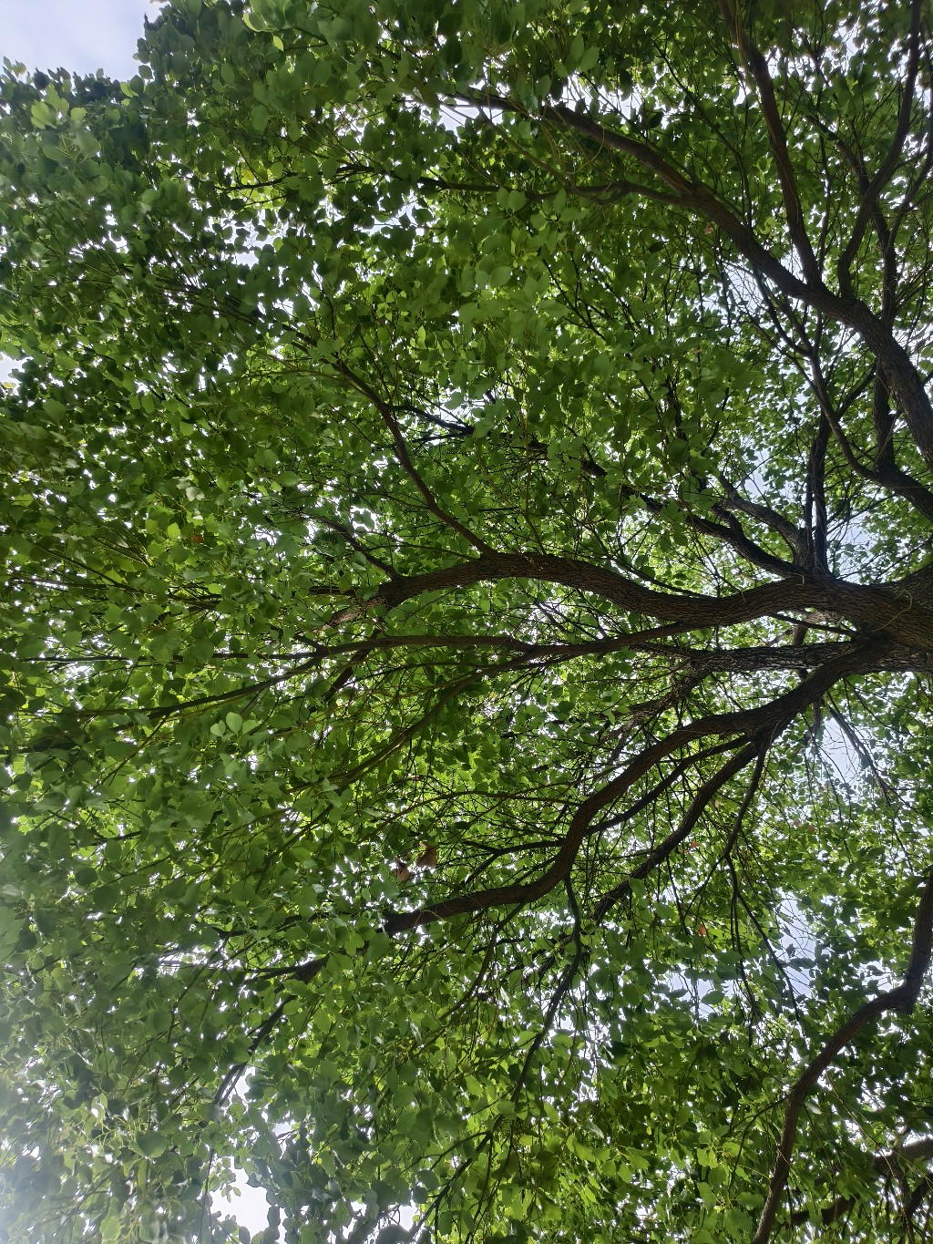是满树繁荣。些许震惊,惊叹于树叶与光交错的闪烁。