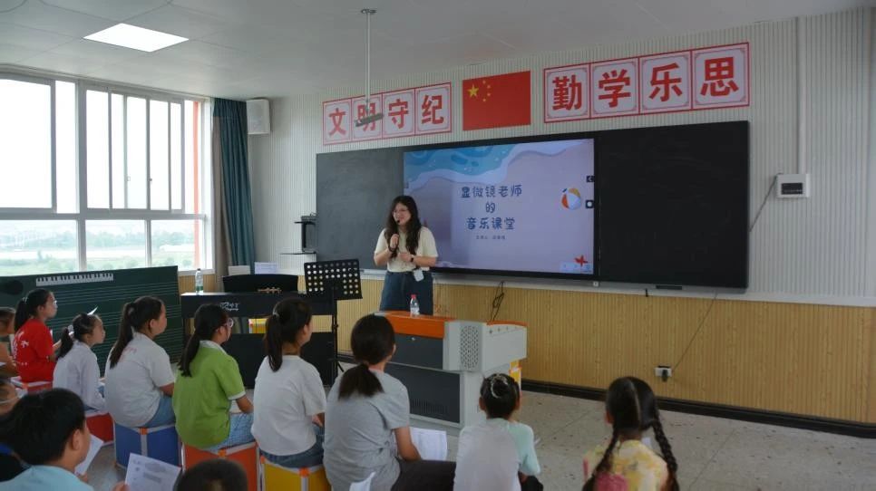 在音乐课上,“显微镜老师” 薛雯婧带着孩子们走进音乐的世界,教学唱经典歌曲《外婆的澎湖湾》。悠扬的旋律在教室里回荡,孩子们跟着老师的节奏,认真地学唱着,歌声中充满了对美好景象的向往。通过这首歌,孩子们不仅感受到了音乐的魅力,也领略到了歌词中所描绘的温馨画面。