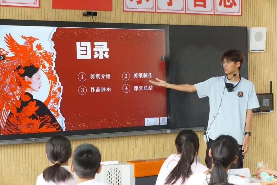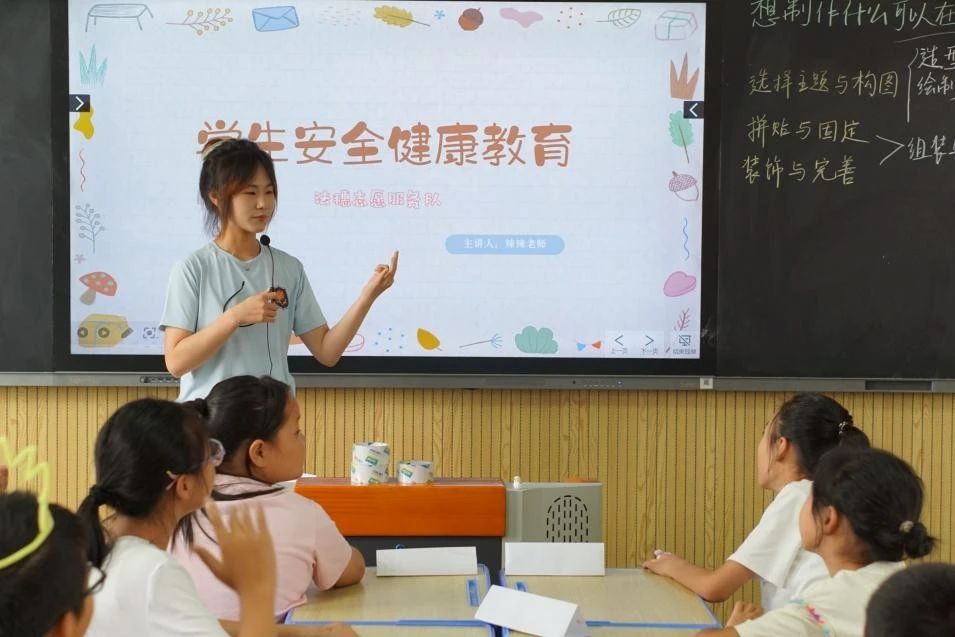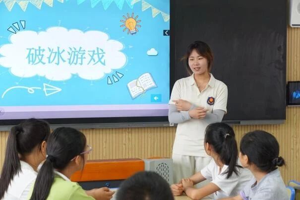 抵达首日,课桌上悄然出现的姓名手卡,消解了初见的局促。“显微镜老师”“辣辣老师”“毛豆老师”……志愿者以充满童趣的自称拉近距离。破冰游戏中,本有些腼腆的孩子在游戏中渐渐放开,笑声、欢呼声此起彼伏,老师们也融入其中,和孩子们一起奔跑、互动,用肢体语言和默契配合打破陌生感。这场充满活力的“大风车”游戏,不仅让教室充满了欢乐,更让师生间的距离在转动中悄然拉近。