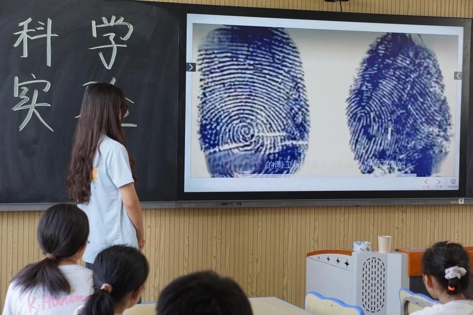 科学实验课上,“吱吱老师”黄婉莹为孩子们揭开了 “指纹的秘密”。老师带领孩子们进行有趣的实验,让他们了解到每个人的指纹都是独一无二的。通过实验,孩子们的科学探究精神得到了激发,对科学知识的兴趣也更加浓厚。