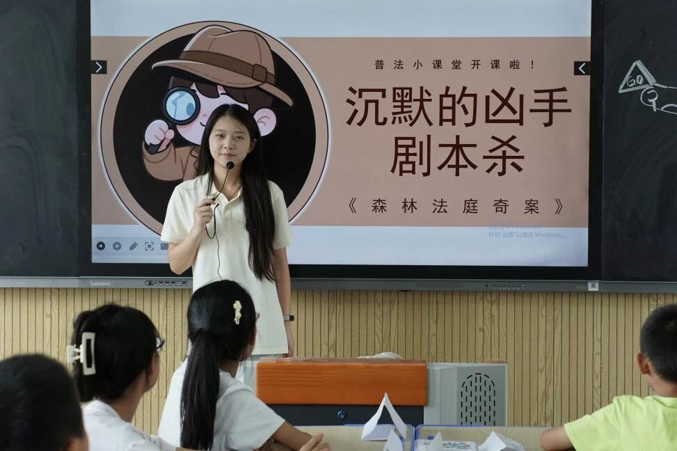 “麦麦老师”王诗怡设计的《森林盗窃案》剧本杀,将法律程序转化为童话语境。孩子们化身啄木鸟法官、狐狸律师,通过搜集“露珠证言”“树叶证物”,沉浸式体验举证质证流程。一场看似游戏的庭审,悄然植入程序正义与证据意识的基因。