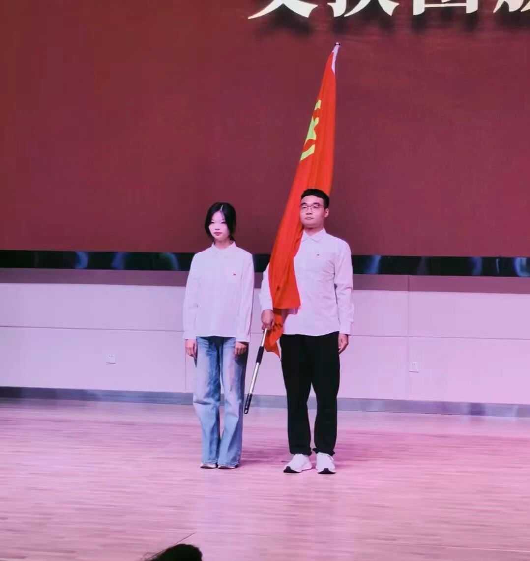 新任副书记从往届副书记手中接过团旗,这面旗帜承载着服务师生的根本宗旨和推动校园建设的重要使命。通过旗帜传递,实现了工作职责与组织精神的传承,标志着共青团事业的持续发展。