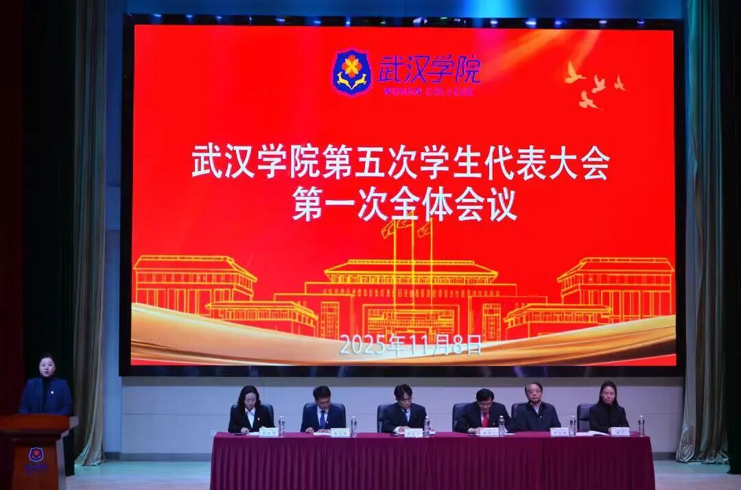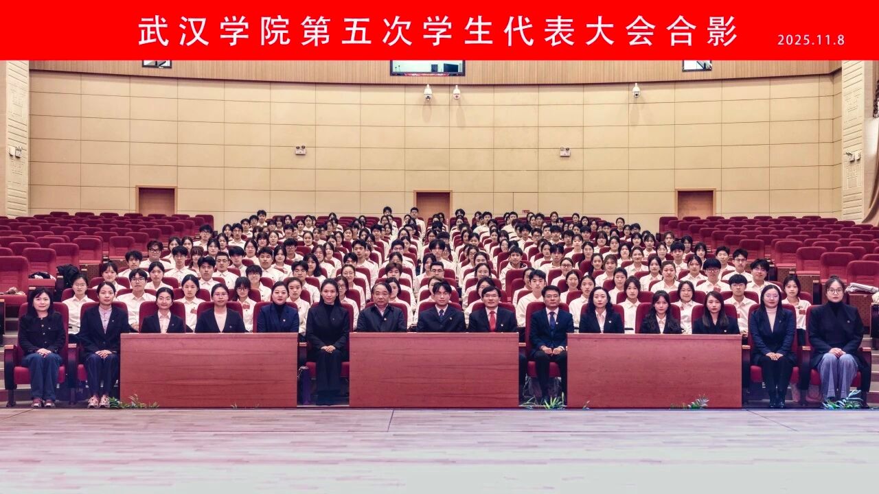 2025年11月8日,武汉学院第五次学生代表大会在马化腾教学楼刘炽平报告厅胜利召开。
